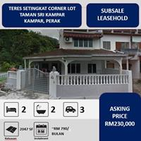 [CORNER LOT] [NEGOTIABLE]TERES 2 TINGKATTAMAN SRI KAMPAR, KAMPAR PERAK===============HARGA : RM 230,000 DETAIL :- Leasehold - Non bumi lot- Luas: 2047 sqft- 2 Bilik - 2 Bilik air INFO TAMBAHAN :- Dapur ada kitchen cabinet- Dapur sudah diubah suai dibahagian tepi & belakang- Bilik tidur utama sudah diubah suai- Tambahan ruang makan di bahagian tepi- Lantai berjubin (tiles)